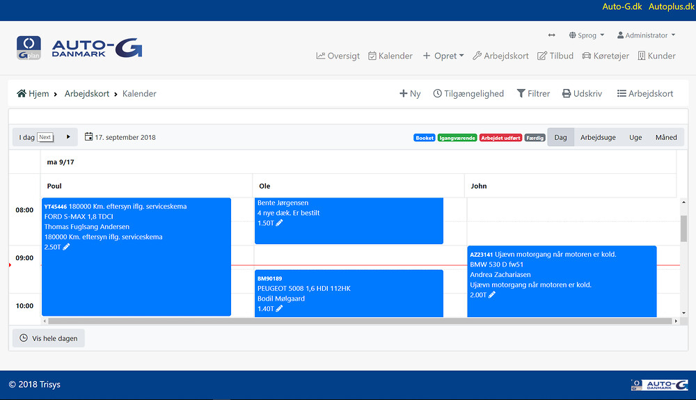 "Vi har inte upplevt en enda krasch. En enkel gång har systemet fungerat lite långsamt - kanske på grund av en uppdatering", säger Benjamin Henriksen och tillägger: "Gplan har fungerat perfekt för oss alla. På verkstaden har varje mekaniker sin egen dator med streckkodsläsare, där uppgifterna startas och avslutas. Och eftersom arbetsstatus visas med färgkoder, kan jag snabbt se vilka uppgifter jag behöver checka i uppgiftslistan eller kalendern innan de faktureras".